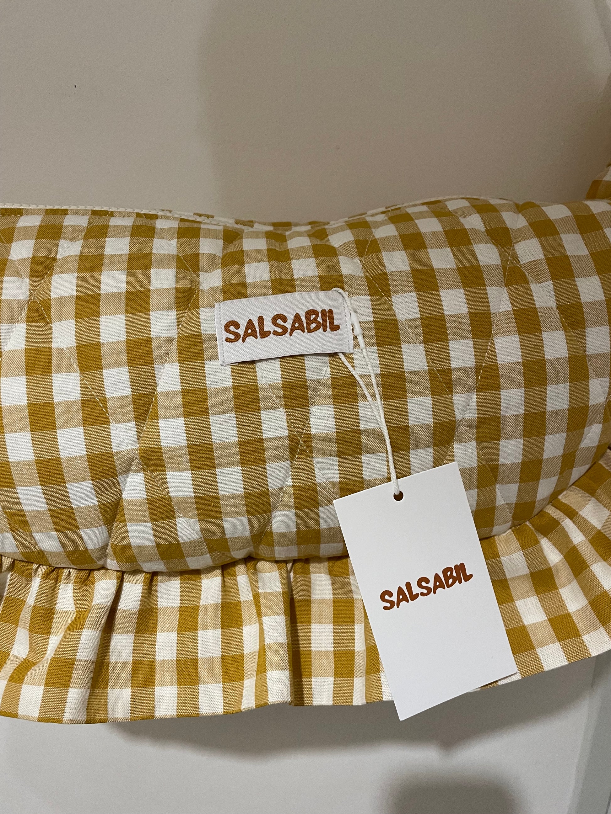 ( Tissu extérieur 100% coton vichy , intérieur uni beige avec deux poches )