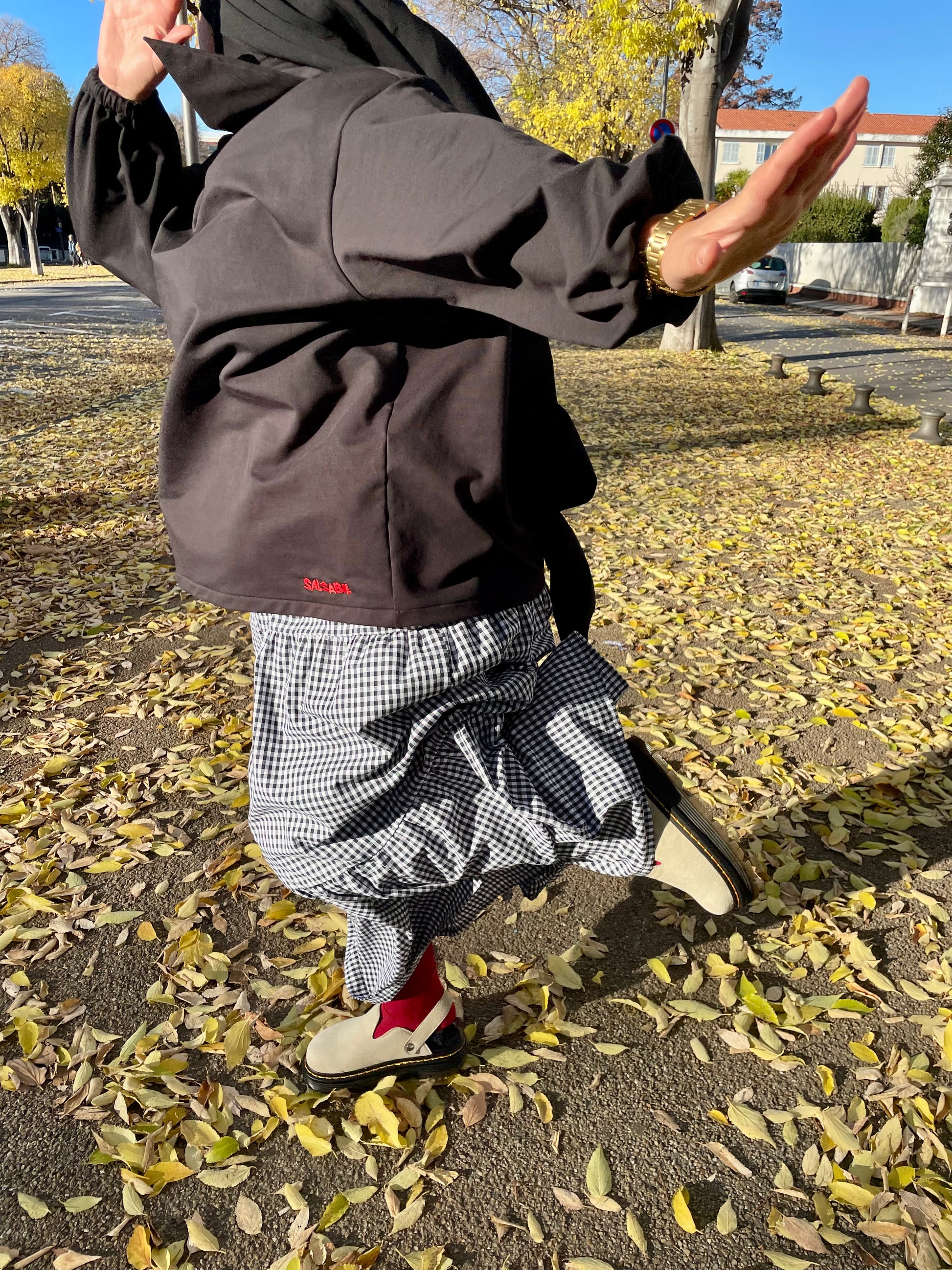 Iconique et intemporel , la jupe signature vichy black séduit par son volume généreux et ses fronces délicates qui lui donne une allure fluide et élégante.