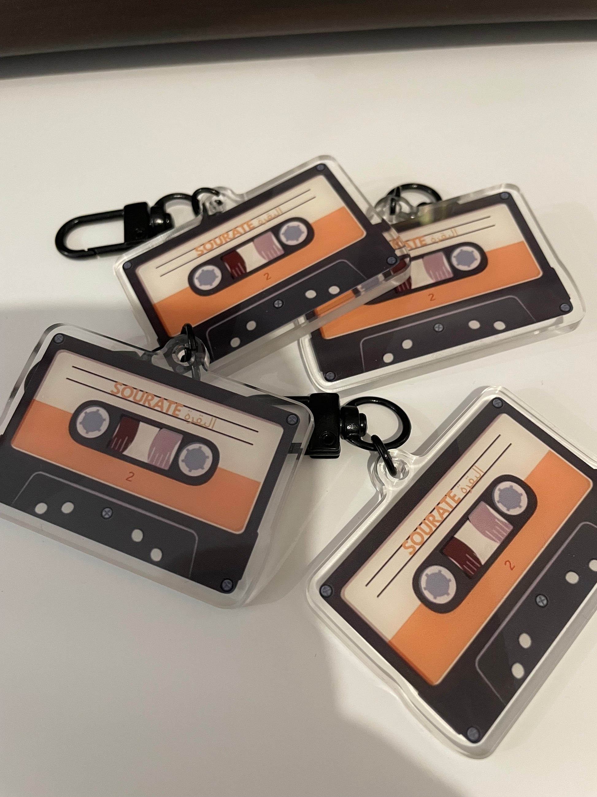 Un mélange entre nostalgie et spiritualité, ce porte-clés reprend la forme d’une cassette à l’ancienne, comme celles qu’on écoutait autrefois avec l’inscription Sourate 2 Al baqarah.